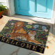 Willkommen Doormat mit Majestic Lion & Tiger im Dschungel der Kunst Nuovo, umgeben von einer wunderschönen exotischen Pflanze, Lotus-Blume und "Erdbeerdieb" Vintage Kunstwerke im Stil von William Morris. Herrliches Geschenk für neue Hausbesitzer und Hochzeitsgeschenk. Passen Sie den Begrüßungstext einfach an. Für kleinere (Größer-)Versionsanpassungen, bitte in meinem Shop nachsehen.