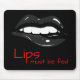 Glamour schwarzes Mauspad mit schwarzen Kissenlippen und Lippen zitieren "Lippen müssen gefüttert werden". Verwenden Sie Ihre Lieblingsfarbe im Hintergrund.