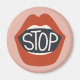 Dieses Design enthält Lippen, die die Worte Stopp bilden.