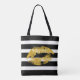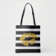 Einfache schwarz-weiße Streifen und goldene Glitzer Lippen. Maßgeschneiderte Taschenvorlage