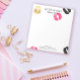 Chic personalisiertes Notizblock mit Lippenstift-Markierungen in Rosa, Schwarz und Gold. Passen Sie Ihren Namen, Ihren Titel und Ihre Kontaktinformationen an.