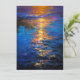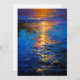 Golden light shimmers across deep blue water in an expressive, impressionistic reflection of twilight.