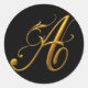 Schöne klassische Eleganz! Ein fließendes flüssiges Goldmonogramm auf schwarzem Hintergrund. Sie können sich mit einer beliebigen Hintergrundfarbe anpassen. Alle verfügbaren Buchstaben. Perfekt für die perfekte Finishing-Touch zu jeder Mail! Oder der perfekte Aufkleber, um Ihren Gastgeschenke Hochzeiten hinzuzufügen!