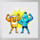 A humorous and energetic cartoon design featuring a juice cup and a water bottle flexing their muscles with confidence. This playful yet powerful illustration highlights health, hydration, and strength in a bold cartoon style, perfect for gym lovers and healthy lifestyle enthusiasts.