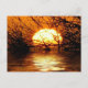 goldener Sonnenuntergang am Horizont, der in das Wasser schmilzt, umgeben von der Silhouette der Natur