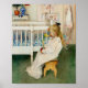 Kleines Mädchen im Kinderzimmer Posen in ihrem Nachthemd. Auf einem Portrait wird ihr das Halten einer gelben Tulpe dargestellt