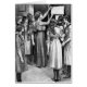 Kunstwerk aus einem Vintagen Buch für Teenager. Zeigt eine Gruppe von Mädchen Ansammlung als Lehrer veröffentlicht eine Liste an der Wand