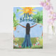 Wunderschön illustriertes Litha Summer Solstice Collage Design mit einer strahlenden Sonne, Bienen und ihrem Bienenstock, Sommerfloralen, Grüntönen, Pilzen und einer wunderschönen Frau in einem blauen Kleid. Mit dieser farbenfrohen und hellen Karte senden Sie Ihren Lieben ein Lächeln.