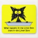 ", was im Sänftekasten geschieht, bleibe im litterbox" Cartoon schwarzer Katze mit Haltung im litterbox.