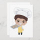 Ein kleiner Bäcker in einer Bäckerei mit einem Backfach. Dieses Design sieht wirklich effektiv auf diese Einladungen