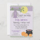Niedliches Halloween Baby Duschbad mit Vollmond-Set, Hexenkessel voller fallender Äpfel und Kürbisse. Baby Dusche Einladung in geschlechtsneutralen Pärchen und Grüntönen für Baby Jungs oder Baby Girls.