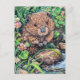 Niedlicher zeichn eines kleinen Bibers, der von der Bachbucht umgeben ist, umgeben von fließendem Wasser und üppiger Vegetation.