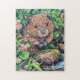 Niedlicher zeichn eines kleinen Bibers, der von der Bachbucht umgeben ist, umgeben von fließendem Wasser und üppiger Vegetation.