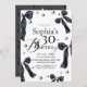 Modern stylish birthday party invitation black watercolor bow and modern script. Classy and elegant, simple and modern invitation.