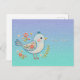 Little Blue Bird Floral Postcard Postkarte