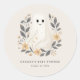 Das kleine Boo Boho Ghost Halloween Baby Shower Classic Round Sticker verfügt über einen hübsch gespenstischen Geist, umgeben von bohmianischen Botanikern.