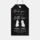 Niedliches Geschlecht offenbart Gastgeschenk-Tag mit Mädchen und Jungen Geist. Im eleganten Text heißt es: "Danke, dass du unser kleines Boot geduscht hast."