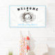 Ein kleines Buch ist fast fällig, lustiges Halloween Baby Shower Banner in schwarz & weiß und blau, mit einem niedlichen Pinking Baby Geist. Personalisieren Sie den Text einfach. Kate Eden Art
