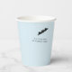 Niedliches pastellblaues Halloween "ein kleines Boo ist fast fällig" Ghost-Design-Papiertassen für eine kleine Boo-Thema Babydusche oder ersten Geburtstag. Personalisieren Sie den gesamten Text mit Ihren Ereignisinformationen