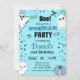 Blauer und schwarzer Boo Halloween kleine Geburtstagseinladung, Gespenst Geburtstagseinladung für Junge, Halloween-Geburtstag einladen