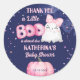 Ein kleines Halloween niedliches Girl-Baby-Dusche danke Ihnen für die Geschenkstickerchen. Ein niedlicher Babyghost mit einem rosa Haar-Bogen Aquarell rosa Kürbis auf einem dunkelsternigen nächtlichen Hintergrund für Halloween-Babydusche.