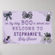 Little Boo Itsy Bitsy Spider Halloween Baby Dusche Begrüßungsschild Poster - ein kleines Boo ist fast fällig! Mit diesem personalisierten Werbebanner-Plakatzeichen für die Halloween-Babydusche fügen Sie Ihrem Babyduschdekor eine besondere Touch hinzu. Ideal für einen leckeren Herbst oder Herbst Babydusche. Dunkel und leicht lila mit schwarzer Farbpalette. Super niedliche und bezaubernde Baby-Themed Aquarellbilder inklusive einem Baby-Schnuller, einem Vintagen Kinderwagen oder Kinderwagen mit Spinnweben, einem coquette-schwarzen Bogen und einer bezaubernden juckenden Spinne. Personalisieren Sie dieses Baby Dusche Willkommensschild Banner Poster mit Ihrem Namen. Alle Texte können bearbeitet werden.