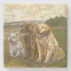 I used thick, textured oil paint to give the duck feathers and the dogs coats a bit of depth and character. The softer colors of the field and the barn in the background help create a calm, rustic feeling that draws the eye. These stone coasters are a beautiful way to bring that fairytale farm vibe to your coffee table or kitchen. They protect your surfaces while adding a sense of nature inspired wonder to your home.