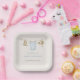 Adorable little cowboy themed baby shower paper plates featuring a charming clothesline design. Perfect for a western inspired celebration with rustic and playful details. Ideal for dessert tables, buffet setups, and coordinated party decor. High quality print.