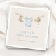 Adorable little cowboy themed baby shower napkins featuring a charming clothesline design. Perfect for a western inspired baby shower celebration with rustic and playful details. Ideal for dessert tables, drink stations, and coordinated party decor. Customizable text. High quality print.
