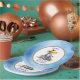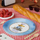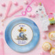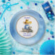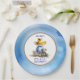 Oh, Junge, es ist ein Lil' Cowboy! Blauer und brauner Teller mit Babydusche in einem Cowboy, der mit einem Teddybär, einem Zug und einem Baby-Küken sitzt. Land und Western Thema rustikale Kinderdusche.