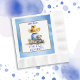 Oh, Junge, es ist ein Lil' Cowboy! Blaue und braune Duschservietten mit einem kleinen Baby in einem Cowboy, der mit einem Teddybär, einem Zug und einem Baby-Küken sitzt. Land und Western Thema rustikale Kinderdusche.