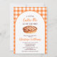 Looking for the perfect gender-neutral baby shower invitations? This cute invitation showcases an adorable watercolor pie illustration, paired with the charming quote, “A little cutie pie is on the way.” It’s an ideal choice for a modern bohemian-style autumn baby shower brunch.