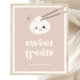 Boho Sweet Leckereien Sign mit einem bezaubernden Kawaii Bao Dumpling ergänzt durch eine neutrale Farbpalette und Retro Typografie.