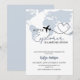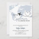Dieses Design verfügt über ein abenteuerliches Thema Babydusche "A Little Explorer is Landing Balon" mit einer blauen Aquarellweltkarte und einem niedlichen kleinen Flugzeug auf der Route. Minimalistisches und modernes Babyduschthema.