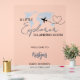 Dieses Design verfügt über ein abenteuerliches Thema Babydusche "A Little Explorer is Landing Balon" mit einer blauen Aquarellweltkarte und einem niedlichen kleinen Flugzeug auf der Route. Minimalistisches und modernes Babyduschthema.