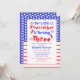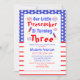 Kleine firecracker patriotische 3. Geburtstagseinladung. Der Hintergrund ist weiß, kann aber an eine Farbe Ihrer Wahl angepasst werden.