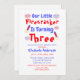 Kleiner Firecracker 3. Geburtstagseinladung. Der Hintergrund ist weiß, kann aber an eine Farbe Ihrer Wahl angepasst werden.