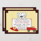 Niedlicher Dalmatiner Welpenhund, Feuerwehrwagen und Feuerwehrhut mit sonniger gelber Streifenunterlage für eine bezaubernde Jungen Geburtstagseinladung. All dieser Text ist für Sie bereit, um mit Ihren Informationen anpassen. Der Geburtstag kann auf den zweiten oder dritten Geburtstag geändert werden, wenn Sie es vorziehen.