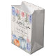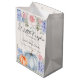 Little Floral Pumpkin Halloween Fall Baby Shower Mittlere Geschenktasche, Ein kleiner Kürbis ist auf dem Weg! zerebrieren Sie Ihre Babydusche Halloween, Herbst Herbst mit diesem niedlichen pastellblauen Kürbis mit Bouquet-Blume und eleganter moderner Kalligraphie Typografie auf Elfenbein