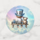 Elegante Säugling Affair, Kleine Gentleman Babydusche, dieser niedliche kleine Junge mit seinem oberen Hut, der in den Wolken auf einer Bank mit seinem Teddy und Rennwagen sitzt.