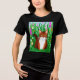 T-Shirt in einem niedlichen, kleinen Ingwer, braun-weiß Kätzchen / Katze, sitzend in einem grünen Feld, umgeben von Wildblumen