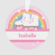 Ein personalisiertes Ornament für das kleine Skater. Design kommt mit einem Paar weißer Skate mit rosa Rädern und Schnürsenkeln. Ein farbenfroher Regenbogen für den Hintergrund, um die Skate und Sterne für die Dekoration zu markieren.