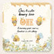 The scripted phrase “Our little honey soon to bee one” sets a joyful tone, with fully customizable serif-font party details to match your plans.