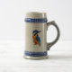 Dekorative Aquarellkunst eines kleinen Königspaliers in lebhaften Blau- und Orangetönen auf einem Bierstein.