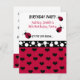Ein niedliches Design mit ein paar Ladybugs und einem Design von schwarzen Herzen auf rotem Hintergrund. Eine lustige Grenze von Kreisen. Passen Sie Ihre Party-Informationen nach Wunsch an.