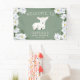 Niedliches Begrüßungsbanner mit einem kleinen Lamm-Babyduschbanner, das ein Baby-Schaf mit einem süßen Lächeln auf dem Gesicht darstellt. Die Blume sind weiß und magnolisch. Ideal für Mädchen und Jungen.