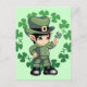 Dieses niedliche St. Patrick's Day Design besticht durch einen kleinen Kobold, der grün gekleidet ist und in einem Kreis Kleeblätter hinterlassen hat.