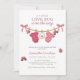 Celebrate the upcoming arrival of a sweet little love bug with this adorable baby shower invitation featuring charming ladybugs, pink gingham back, and baby bodysuits hanging from a rustic clothesline. This design is perfect for a playful yet classic baby girl shower theme.
