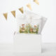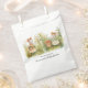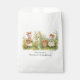 Diese Baby Dusche Gevor-Tasche verfügt über einen schönen Garten-Szene mit zwei anthropomorphischen Mäusen in Blumengestühlen gekleidet, die jeweils einen Korb mit Äpfeln halten. Eine Maus trägt ein fröhliches orangefarbenes Polka-Dot-Kleid, die andere ein weißes Kleid mit orangefarbenen Blume und einem passenden Bogen. Sie stehen inmitten üppiger Vegetation, verstreuten Äpfeln und blühenden Pflanze und schaffen eine warme, skurrile Atmosphäre, die sich direkt aus einem Geschichtenbuch anfühlt. Die sanfte Illustration und die zauberhaften Details machen den Sack zu einem perfekten Sake für eine Feier voller Süße und Waldcharme.