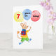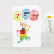 Eine Geburtstagskarte für einen 7-Jährigen mit einer handgemalten, frechen Maus, mit einem Geschenk und Ballons mit den Worten '7 Jahre alt heute! Im Text heißt es "Happy Birthday"